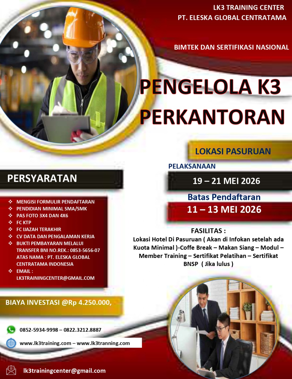 [PENAWARAN TERBATAS] Sertifikasi BNSP Pengelola K3 Perkantoran – Mei 2026